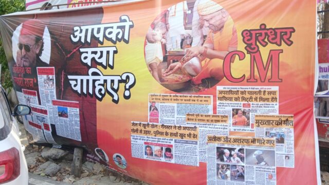 वहीं दूसरी ओर मुख्यमंत्री योगी आदित्यनाथ की तस्वीर के साथ ‘धुरंधर सीएम’ लिखा गया है। इसमें माफिया अतीक अहमद और मुख्तार अंसारी के खिलाफ हुई कार्रवाई से जुड़ी खबरों को भी दिखाया गया है। पोस्टर में जनता से सवाल किया गया है—‘आपको क्या चाहिए?’