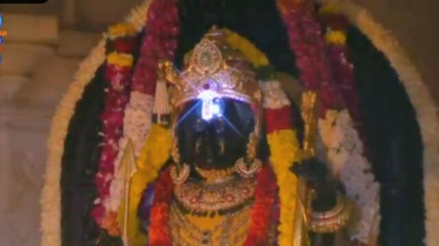 जो श्रद्धालु मंदिर के भीतर नहीं पहुंच सके, उनके लिए शहरभर में बड़ी एलईडी स्क्रीन लगाई गईं, जहां इस दिव्य दृश्य का सीधा प्रसारण दिखाया गया।