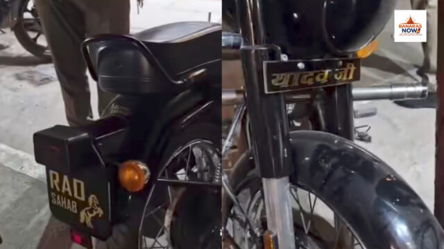 जानकारी के अनुसार, बाइक (UP65FN3320) पर निर्धारित नंबर प्लेट की बजाय आगे और पीछे ‘राव साहब’ और ‘यादव’ लिखा हुआ था, जिससे वाहन का असली नंबर छिपाया जा रहा था।
