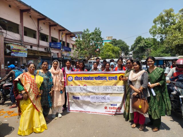 वाराणसी: हरिश्चंद्र स्नातकोत्तर महाविद्यालय में गुरुवार को नारी सशक्तिकरण को बढ़ावा देने के उद्देश्य से “नारी शक्ति पदयात्रा-2026” का आयोजन किया गया। यह कार्यक्रम नारी शक्ति वंदन अधिनियम, 2023 के अंतर्गत आयोजित किया गया, जिसमें छात्राओं ने बढ़-चढ़कर भाग लिया।