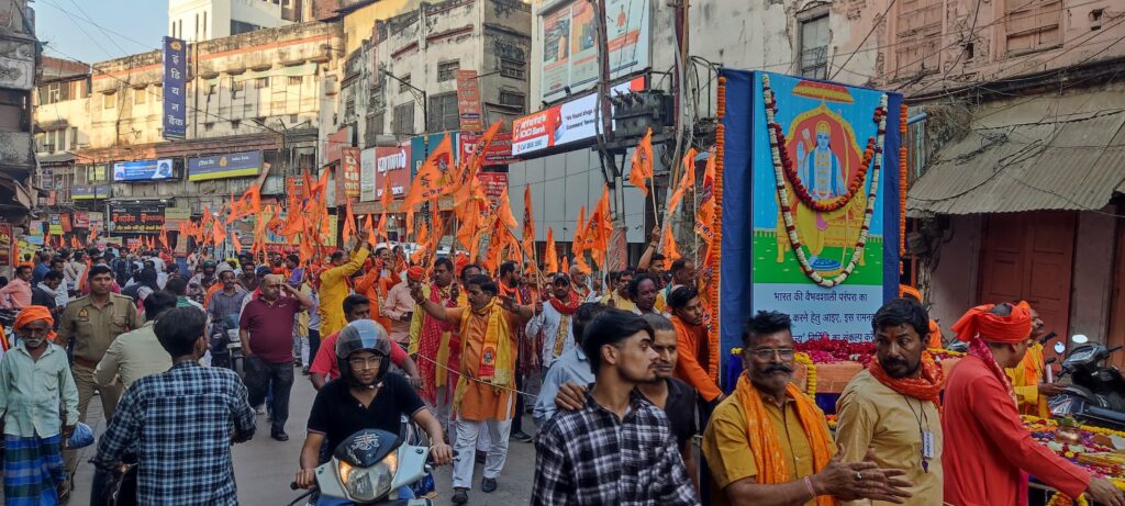 वाराणसी | रामनवमी के अवसर पर वाराणसी में हिन्दू जनजागृति समिति द्वारा ‘हिन्दू एकता शोभायात्रा’ का आयोजन किया गया। इस आयोजन का उद्देश्य हिन्दू समाज में एकता और जागरूकता बढ़ाना बताया गया। शोभायात्रा में विभिन्न संगठनों के प्रतिनिधि और बड़ी संख्या में श्रद्धालु शामिल हुए।